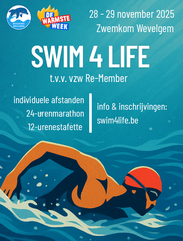 Ook dit jaar organiseert de Wevelgemse Dolfijnenklub de zwemactie ‘Swim4life’, zwemmen voor het goede doel, vzw Re-Member!